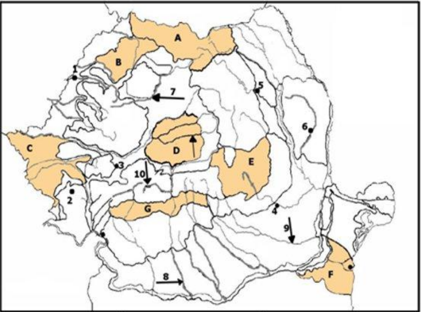 - Influente climatice mediteraneene se intalnesc in sudul unitatii notata pe harta cu litera: