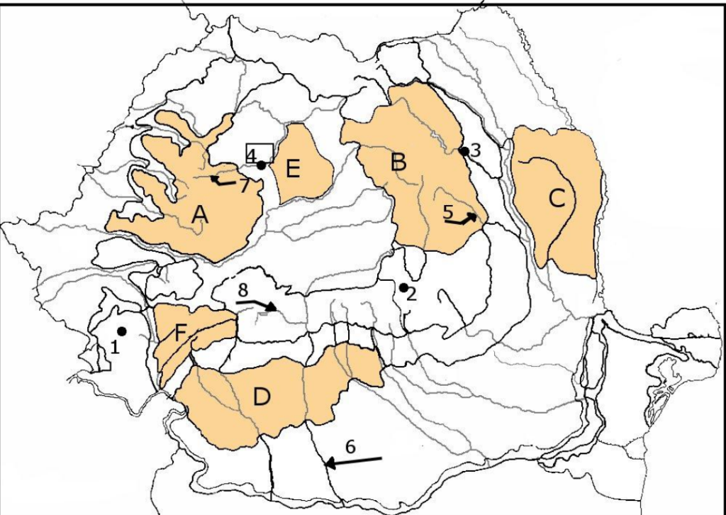IV. Realizati o comparatie in care sa prezentati 2 asemanari si o deosebire intre unitatile notate pe harta cu litera F si A