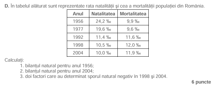 Rezolvare: Bnat = N – M, unde N=natalitate și M=mortalitate