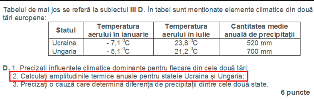 Pentru Ucraina, ampl. term = 23,8°C – (–7,1°C)