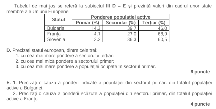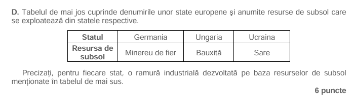 Bac Geografie Subiectul III punctul D