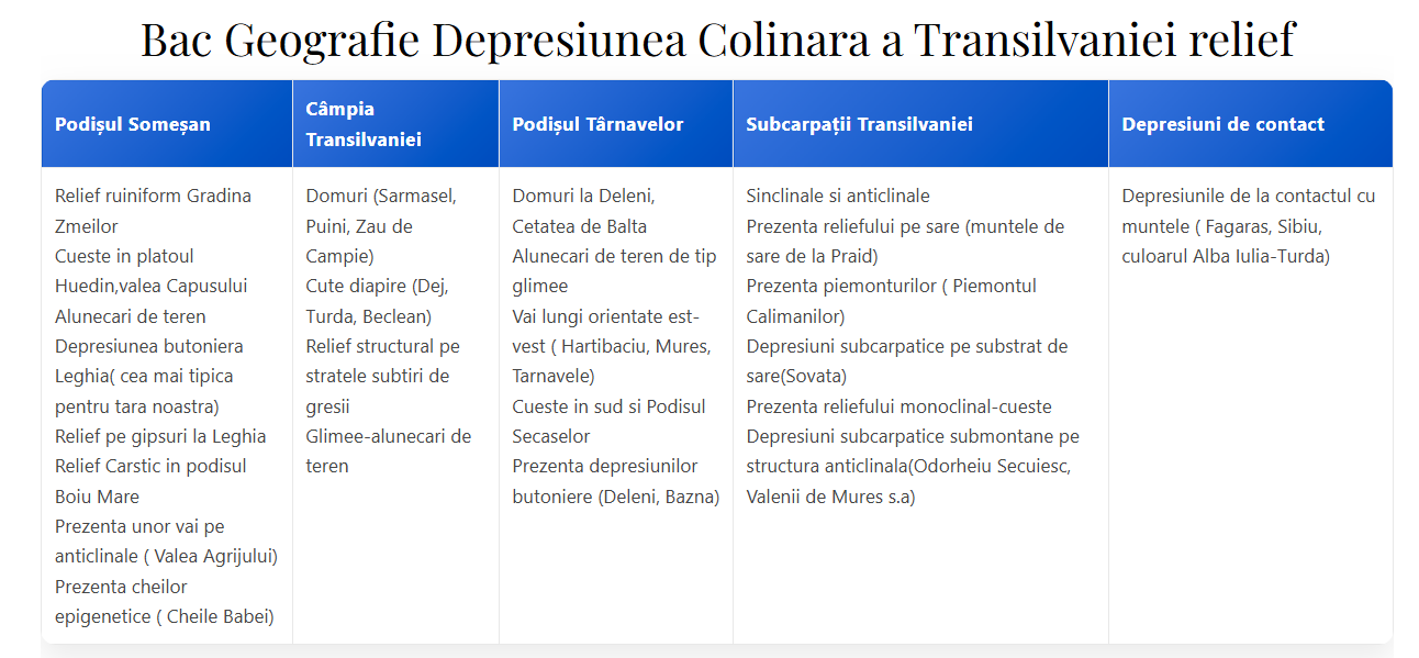 - prezenta Subcarpatilor Transilvaniei(anticlinale si sinclinale)