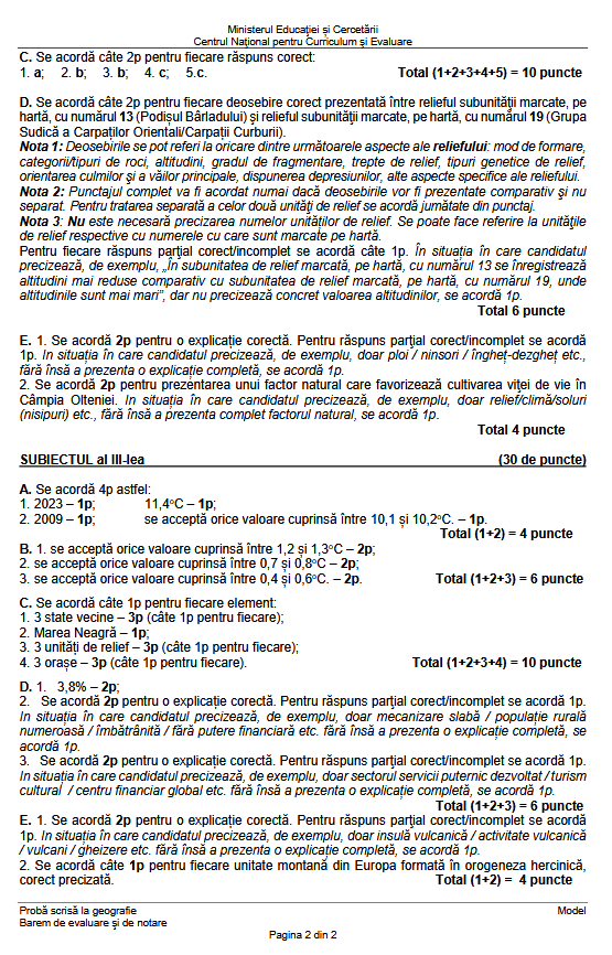 - Subiectul II – exerciții de analiză a unor grafice, hărți sau texte, unde baremul precizează clar pașii de rezolvare;