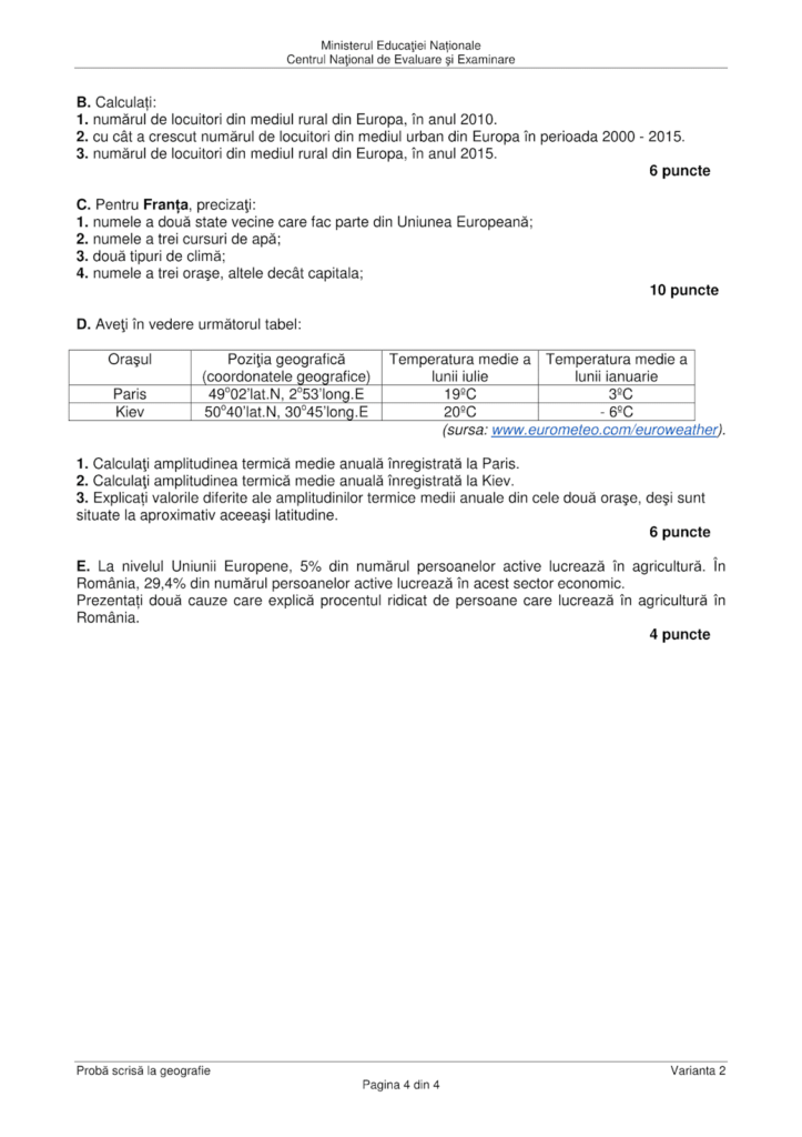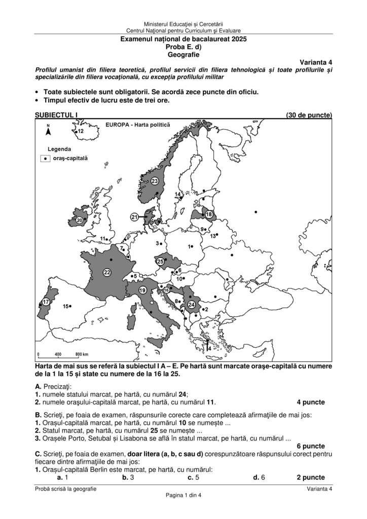 În fiecare an, Ministerul Educației publică modele oficiale și variante de antrenament, care respectă programa în vigoare. Aceste subiecte bac geografie cu barem sunt extrem de utile deoarece permit elevilor să înțeleagă exact cum se punctează fiecare răspuns. Baremul oferă claritate în ceea ce privește formularea corectă, termenii acceptați și modul de acordare a punctajului, ajutând elevii să evite greșelile frecvente.